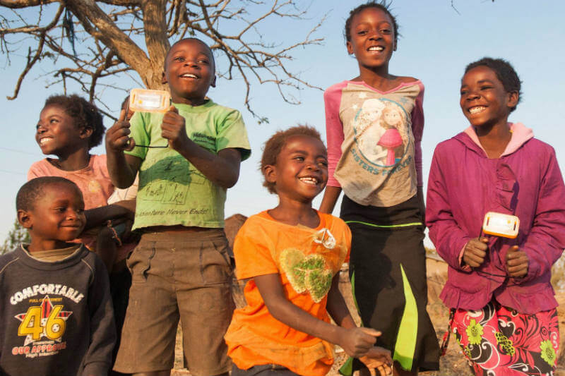 Los impulsores de SM100 repartieron 9,000 unidades a familias de Malaui, Uganda y Zambia, como parte de una prueba piloto para que las probaran y aportaran sus opiniones, con las que se han aplicado cambios en beneficio de las comunidades más necesitadas de estos países, entre las que proseguirá la distribución de lámparas solares de bajo coste.